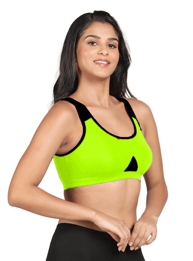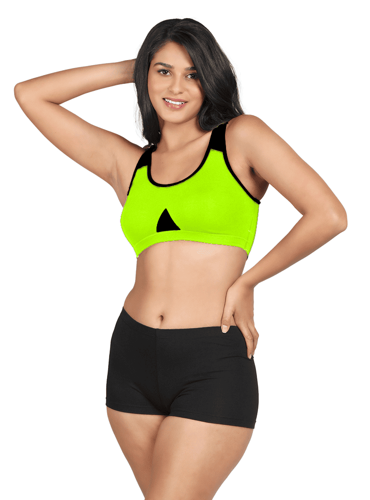 Lemon Green and Black Full Coverage Sports Bra